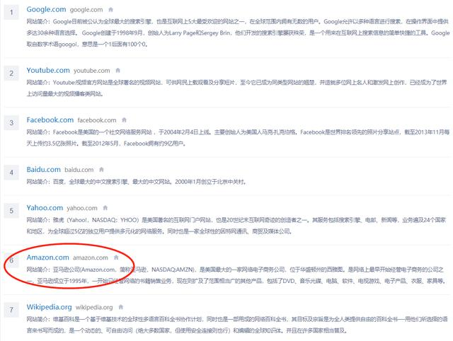1、流量王者:首先大家看下图,在全球网站流量排行榜上,亚马逊是唯一一个进入前十的购物网站,全球排名第六!