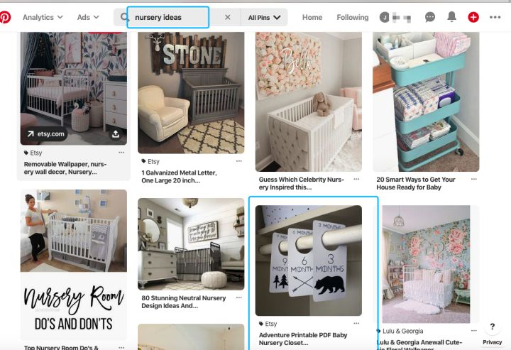 我们现在就看看nursery ideas这个词,看看会检索出来什么东西?