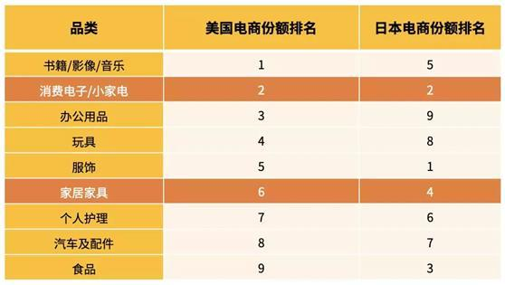 消费电子/厨房家电/家居家装/运动户外,这几个品类在美国和日本都占据一定市场份额,卖家可以优先入手。