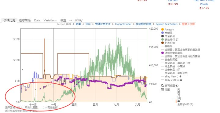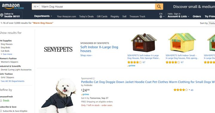 2.把搜索结果产品关键词放入亚马逊搜索比如 Warm Dog House,查看做的比较久reviews数量比较多的产品,keepa的变化趋势从而确定是否冬季款,销量是否ok(keepa上面的销售排名)