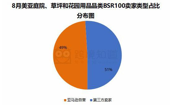 2018 年 8 月美亚庭院、草坪和花园用品(Patio,lawn&garden)Top100产品中亚马逊自营比例为 49%。