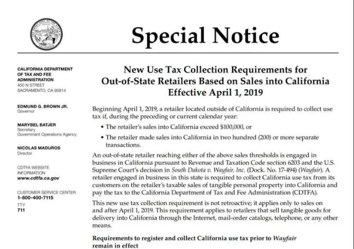 去年10月份部分卖家收到有关加州要求卖家代扣代缴销售税的通知时,当时有Amazon客服回复卖家说只是针对美国公司注册的卖家而言,中国公司注册的不用管。
