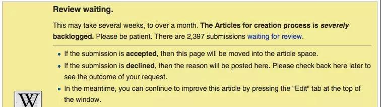 不对这些方面有清晰的认知,我们很难在这个页面中找到可编辑的机会。另外,只有编辑成功过至少10次且账号注册日期大于4天之后,你的账号才有可能升级为自动确认账号(Auto Confirmed User ),后续再编辑时被版主审核的次数和力度会大幅降低。