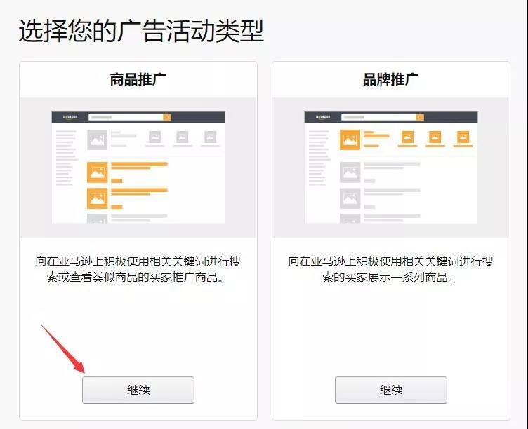 第三步,选择广告活动类型,然后点击【继续】;