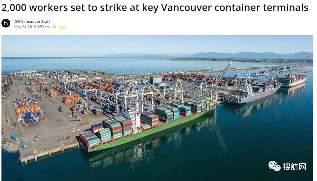 5月27日,搜航网(sofreight.com) 报道了加拿大温哥华港口迎来多日罢工消息,加拿大GCT全球集装箱码头发出72小时罢工通知,并已经于2019年5月27日上午7点在生效!