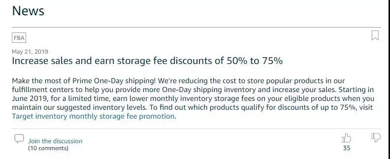 虽然亚马逊最近给销售成绩好的卖家一个巨额的仓储费折扣,来吸引他们备更多货。