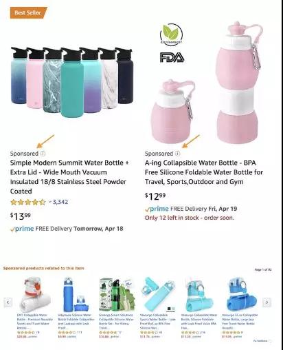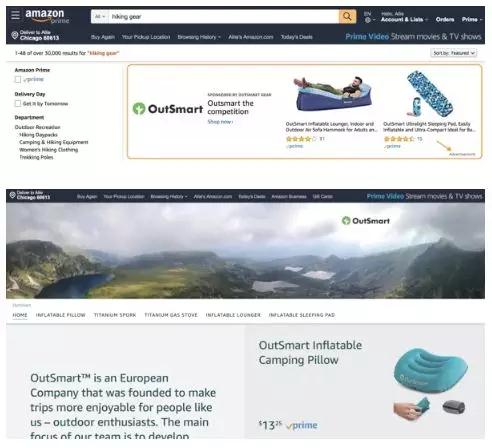亚马逊广告出现在搜索结果页面和产品页面之前,点击广告后就会进入产品详细页面。