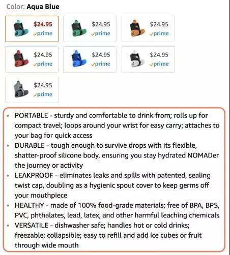 成功的亚马逊卖家利用产品要点来补充说明产品的特征和好处,并为买家解答常见的问题。
