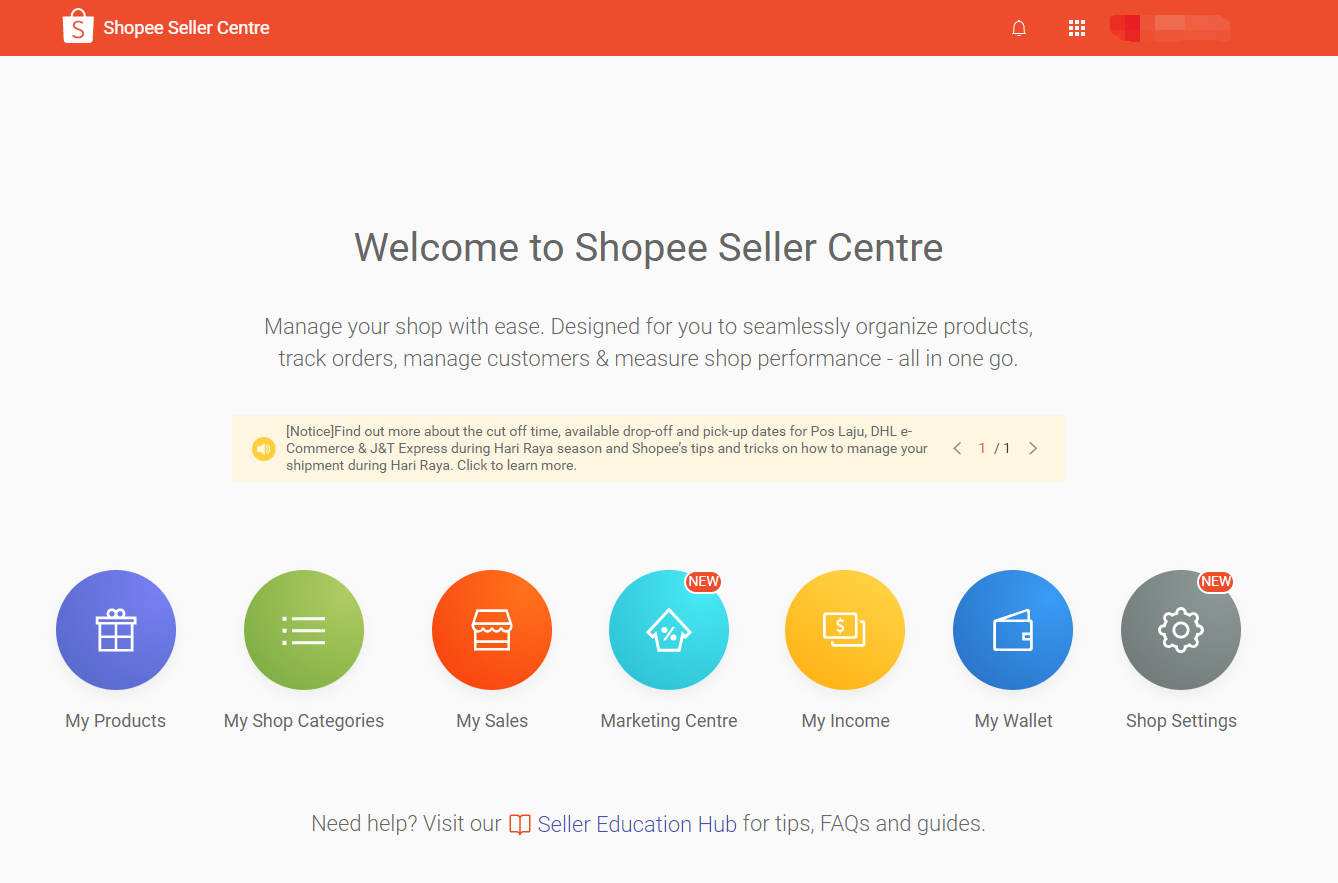 -【Marketing Center】,可提交商品报名参加Shopee平台的活动,以及其他多种推广活动;