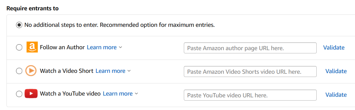 a、No additional steps to enter,这是土豪卖家的要求,心情好,没要求,随便发奖品。