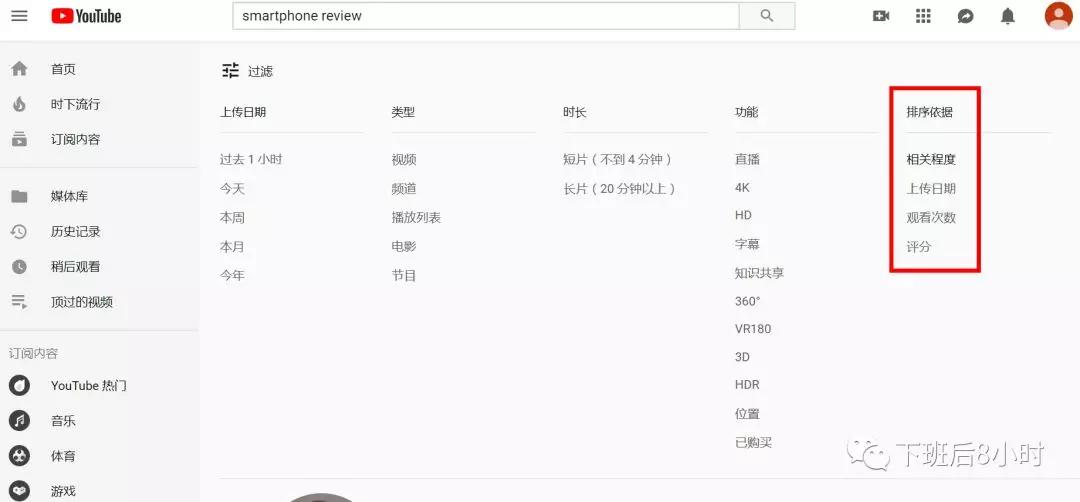 其实在Youtube站内搜索就很强大,建议使用"筛选"功能,主要是以下5个筛选功能:
