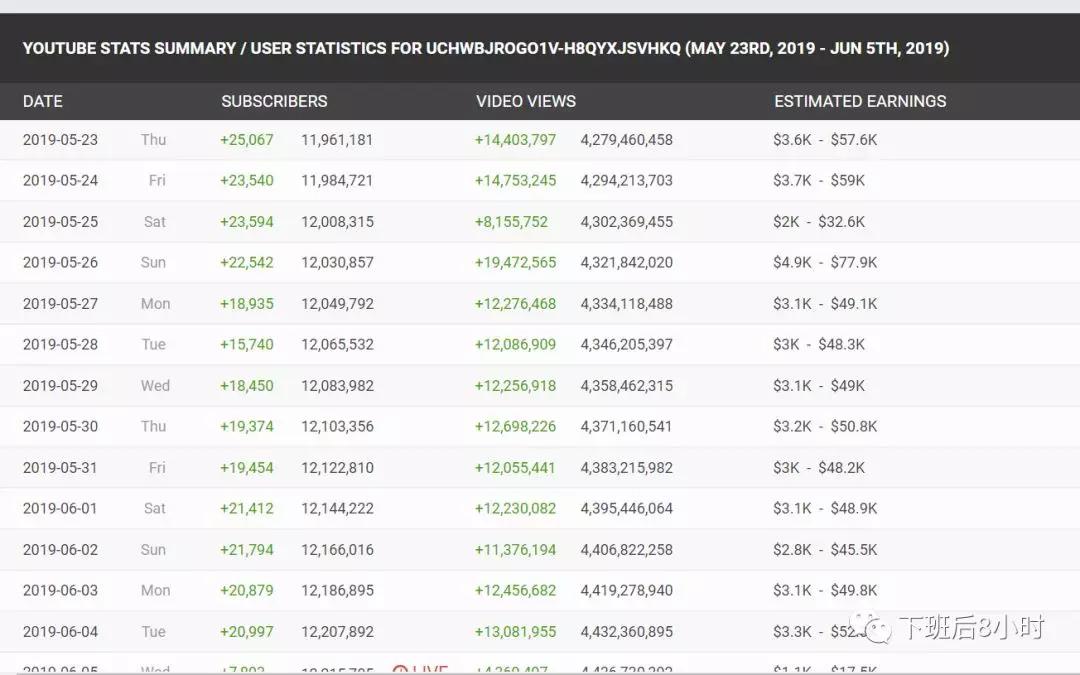 比如我点击排名第一的channel,可以看到更为详细的数据,比如排名,视频观看量排名,预计收入,过去30天的粉丝增长变化,之前发布过的视频观看情况等等非常详细的数据,这是判断一个红人非常重要的依据。找到这些红人的channel之后,我们就按照上述第一种方法去找他们的联系方式。