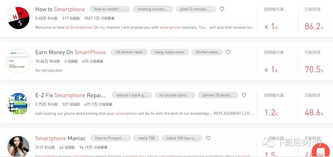 我们也可以直接在Noxinfluencer搜索框直接输入关键词来查看,比如以手机为例,以下筛选可以按照类别、区域、粉丝数等等来筛选。