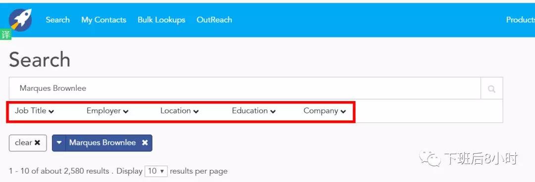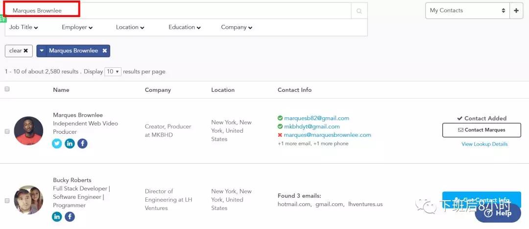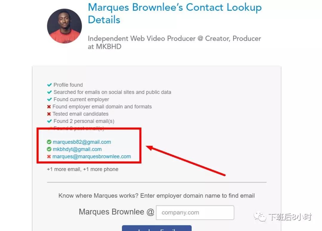 方法二,接输入他的名字“Marques Brownlee”在rocketreach搜索框,会弹出以下信息: