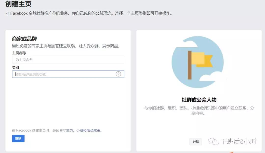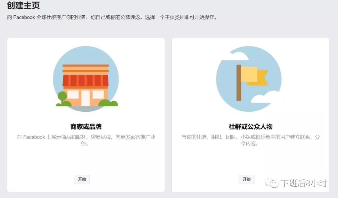 点击创建主页按钮后,会出现以下界面,因为创建主页的大部分都是商家或品牌,所以我们点击商家或品牌创建主页。