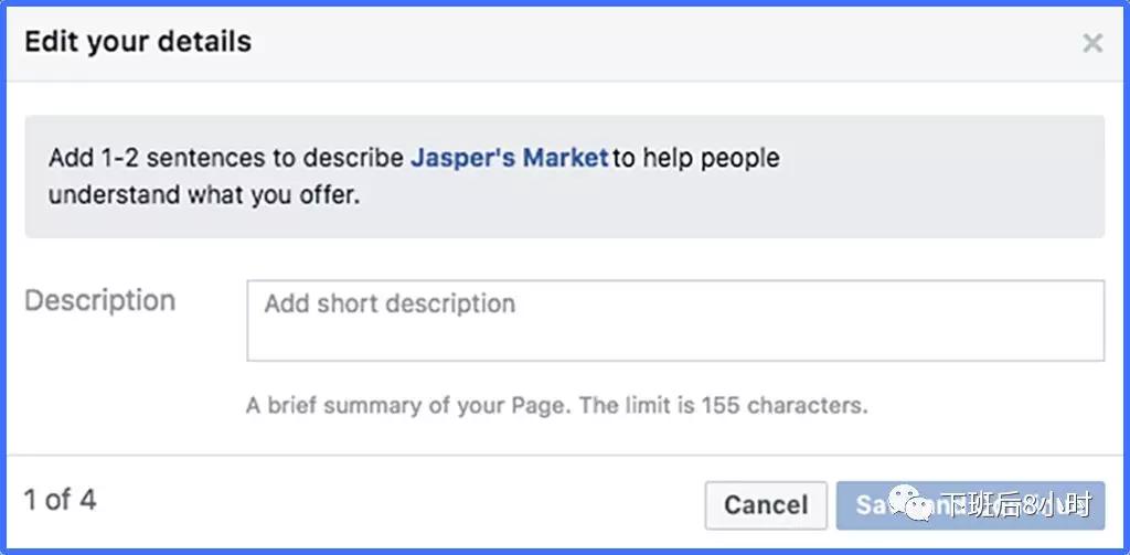 此版块为选填内容,不过我们仍建议填写,以帮助用户深入了解您的业务。另外,当有人在网上搜索您的主页时,说明文字还能增加主页出现在搜索结果中的几率。