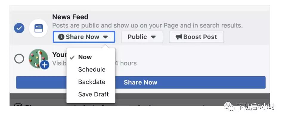 创建好之后,可即时向时间线发布状态,以便马上显示在用户的动态消息中,或者选择排期、倒设日期或保存草稿。