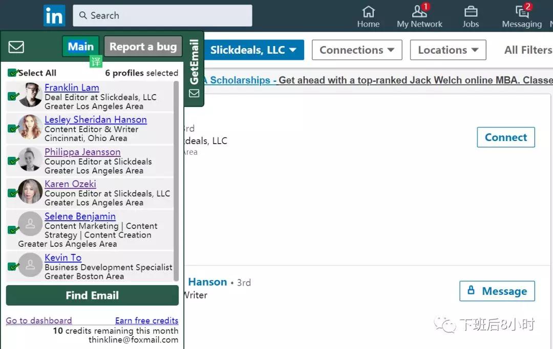 也可以配合领英使用,比如在领英输入,还是以slickdeals为例,找slickdeal的员工编辑。