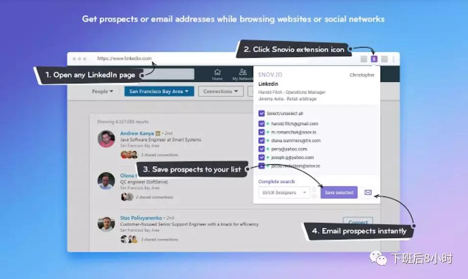 这几个插件主要是配合领英使用的,所以领英上的用户一般都是基于真实的信息,所以开发红人或者外贸客户,不要遗漏领英这个大的平台。