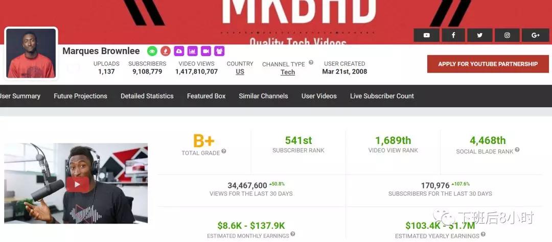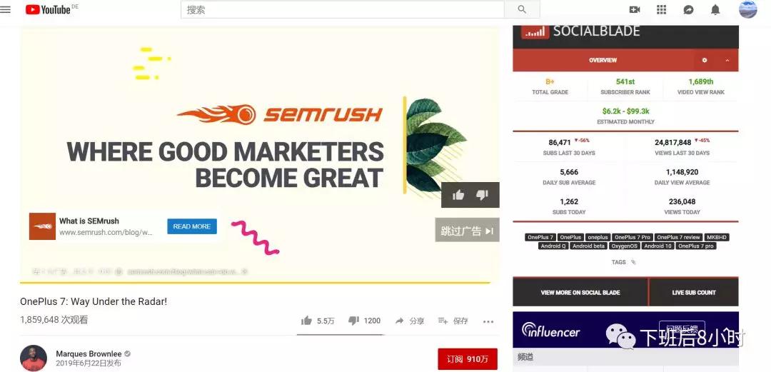 Socialblade跟Noxinfluencer插件,分析红人youtube视频排名,观看量,互动率等;