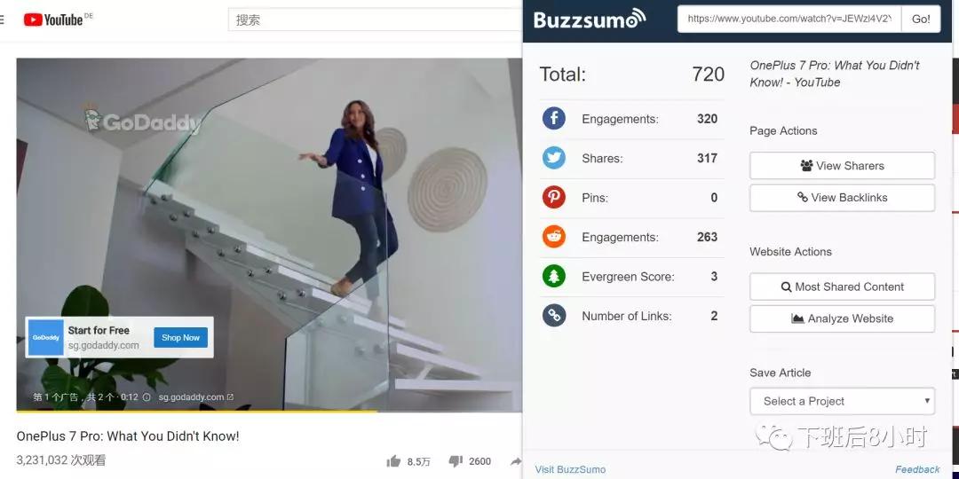 Buzzsumo插件,做内容营销的必不可少的一款神器,可以分析媒体网站,youtube频道等转发量互动率情况;