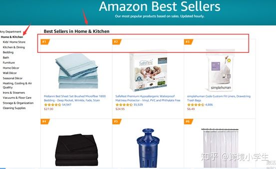 以家居类目为例,我勾选了Home & Kitchen的选项查看产品榜单: