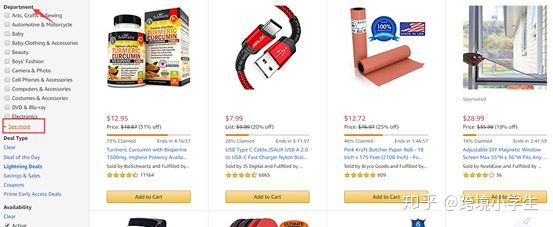 带有橙色进度条的产品表示秒杀正在进行当中,进度条越长代表这款产品秒杀的效果越好。我们可以从自己关心的类目(2019年销量排行靠前的几个行业品类分别为Health&Household 健康与家居、Electronics电子产品,Toys&Games玩具与游戏,Home & Kitchen家居,大家可以参考)去看参加LD秒杀的产品。如果在Review不多的情况下又申请秒杀,而且效果还比较好,则代表这个产品是受国外市场喜欢的。