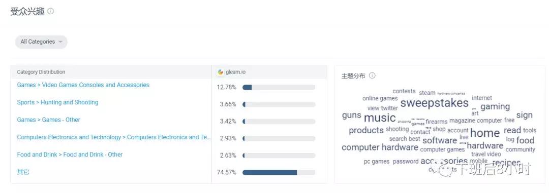再来看看Gleam网站受众的一些情况,主要是年轻的男性用户为主,爱好主要是游戏,运动,电子消费品等。