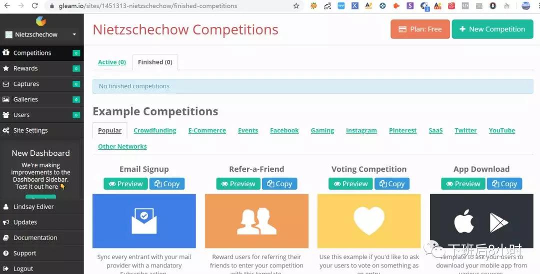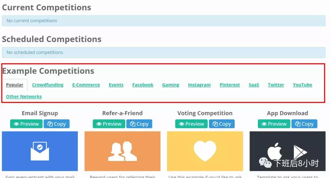 Gleam(https://gleam.io/)操作非常便捷,可以copy已有的模板也可以自己设置新的规则。