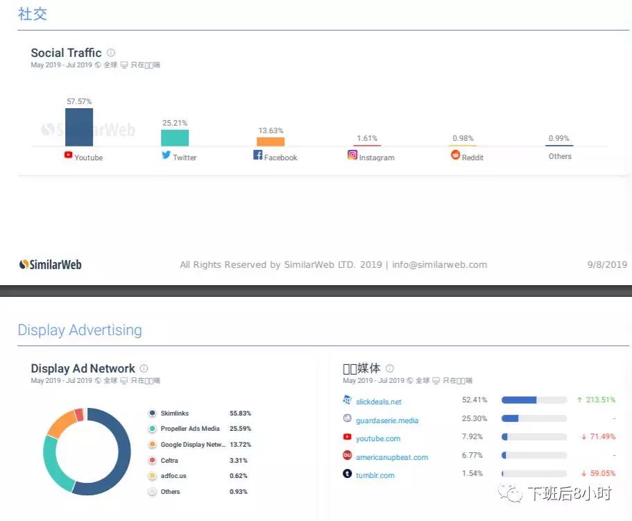 在看一下流量来源情况,主要是直接以及社交媒体,外链主要是一些游戏网址,Social draffic最多的主要是youtube。