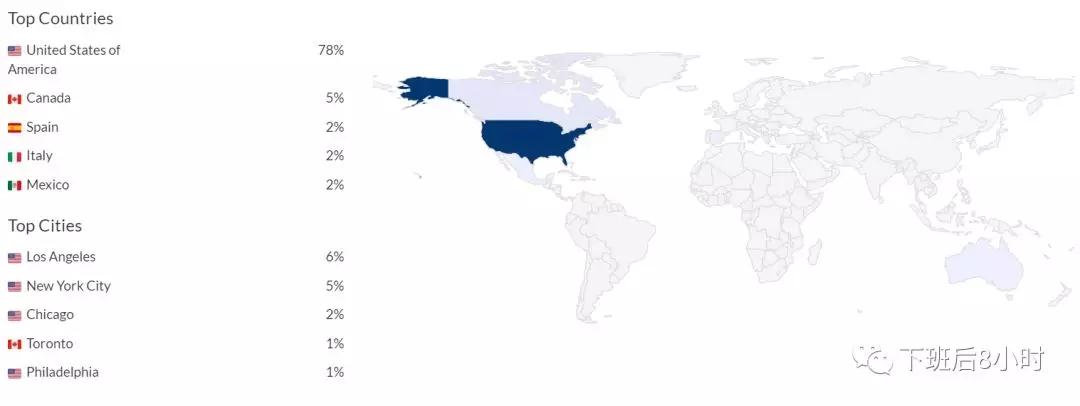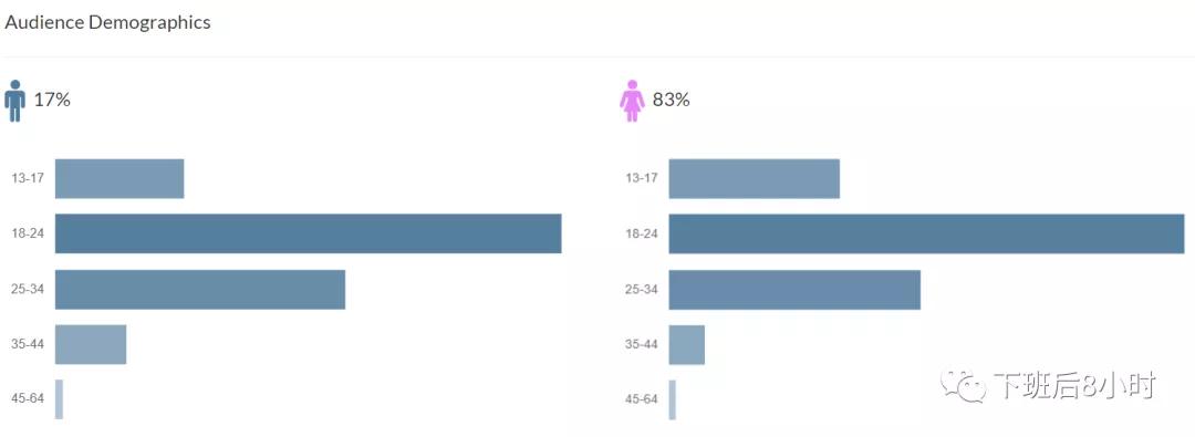比如互动率,平均每个Post 77.1K赞以及899个评论, 还有粉丝的Demographic info,比如主要是来自美国,年龄主要集中在18-34比较年轻的受众。