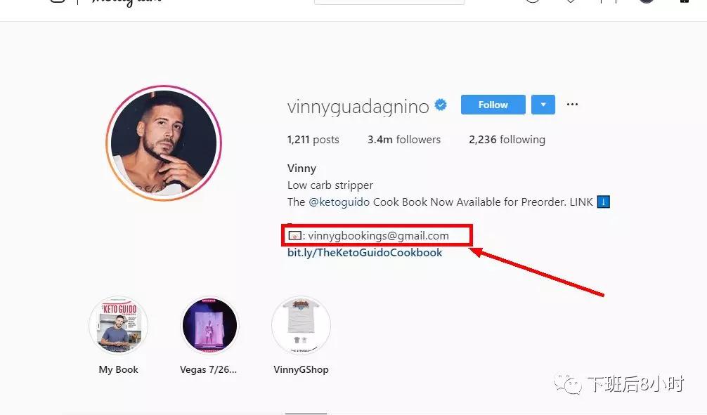 如果有意向跟这位红人合作,接下来就是找他的联系方式,可以在平台直接发信息给他也可以去他的Instagram主页去找相对应的联系方式,然后发邮件说明合作意向。
