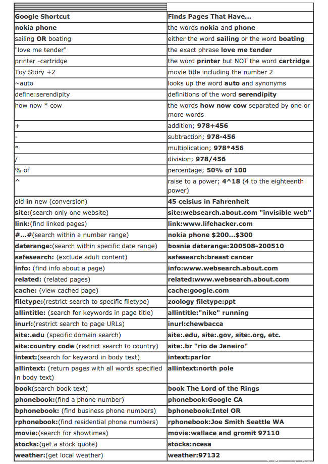 下面这个图片可以帮助卖家们熟悉Google的快捷搜索方式,让搜索变得更高效,搜索质量也会有所提高,可以练习一段时间,你的搜索技巧将会有很大的进步。