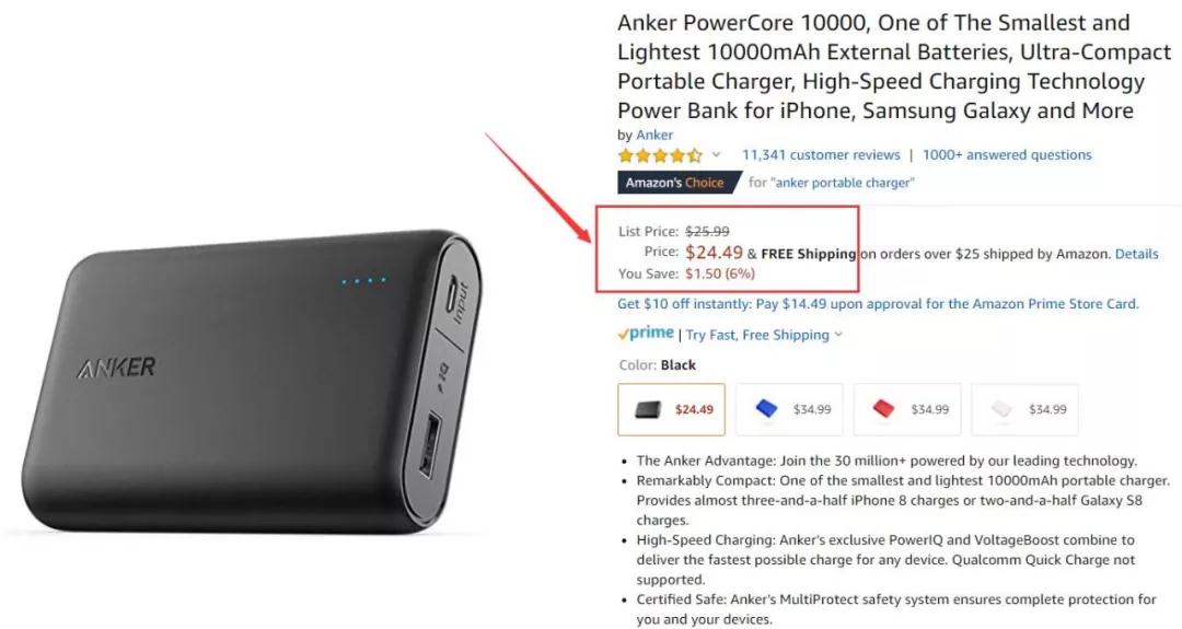在我们浏览亚马逊友商商品页面的时候会发现,他们listing显示的价格包括List Price(并带有中划线),然后是产品正常销售出去的Price,下面还会告知买家You Save省了多少钱,省了多少个百分点。