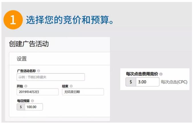 无需大量资源,无需最低预算,只需要几分钟、简单几步就可以快速创建一个展示型推广。