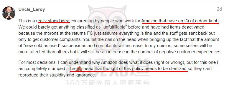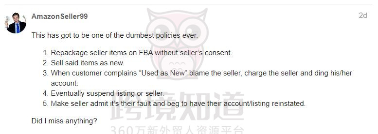 一石激起千层浪,这位卖家一爆料,其他卖家立马就炸锅了,亚马逊怎么悄咪咪做了如此大的改动却一点消息都不告诉卖家,还得要自己发现?国外各个论坛里的卖家都生动地表达了对亚马逊此次改动的不满,小编整理了国外卖家针对此事的态度,小伙伴们可以参考这一新变动将会带来的影响~