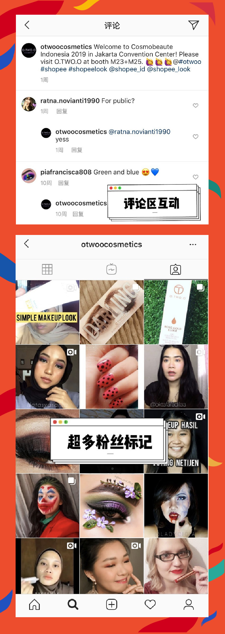 目前O.TWO.O品牌在Instagram上的其中一个印尼账号已有5.4万粉丝,并且一直保持较快的涨粉速度。粉丝中基本是精准的印尼用户,大部分用户都在Shopee印尼店铺有过购买行为。该账号在O.TWO.O开设Shopee印尼店铺时开始运营,主要来配合店铺维护粉丝,输出品牌内容。