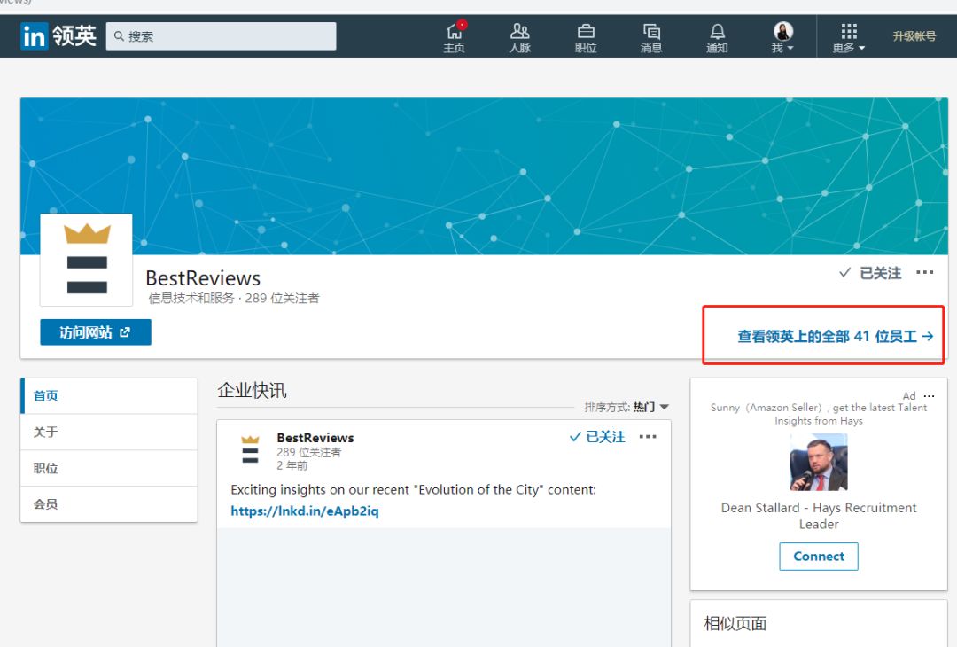 点击查看领英上的全部 41 位员工 ,就能找到任意想联系的该公司联系方式了。