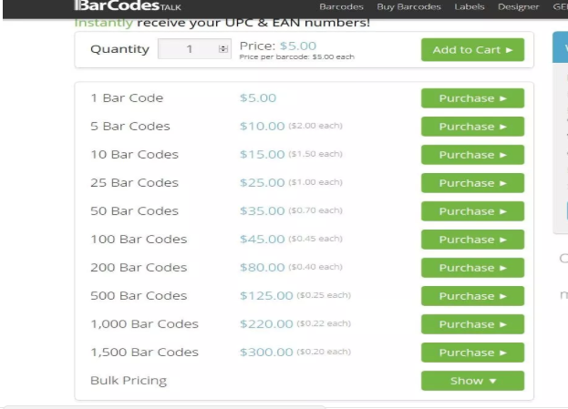 当然如果对于UPC没有这么高的要求,那么通过一些其他正规的渠道来购买UPC也是可行的,只要UPC是干净、唯一的即可。官方渠道:https://www.barcodestalk.com