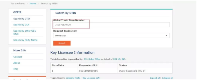 这里再教大家一个查询UPC真伪,溯源UPC的方法:http://gepir.gs1.org