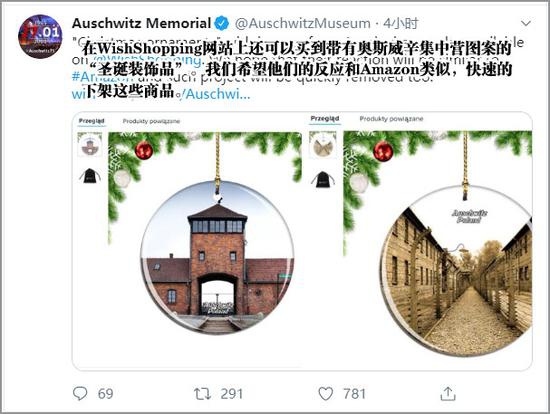 亚马逊网站目前被曝出售带有奥斯威辛集中营形象的圣诞树装饰和纪念品,对此,奥斯维辛集中营纪念馆表示抗议,并要求亚马逊下架这些令人不安的商品。