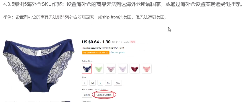 SKU作弊,卖家滥用SKU设置功能发布偏离正常价格的高价货低价SKU,或不支持出售或到达的SKU 有卖家之前就用过这种方法来打造爆款,但现在已经不可行了。