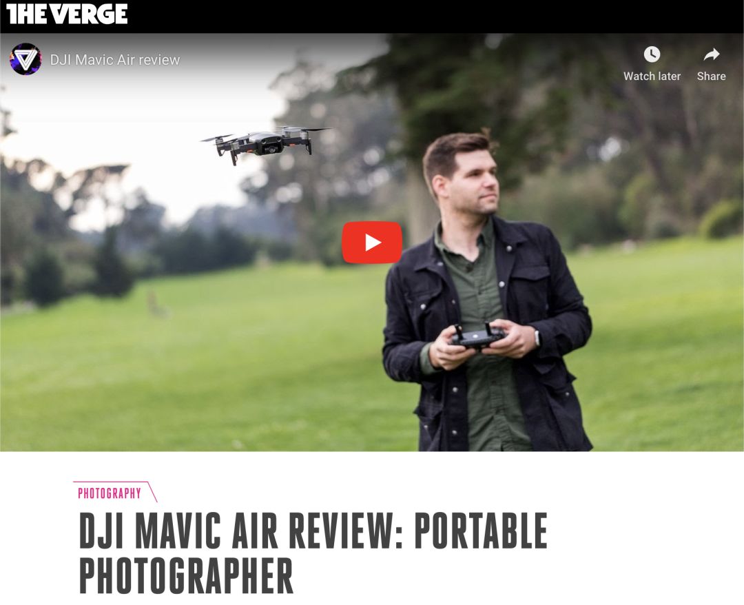除了前文所提到的网红拍摄博主进行测评之外,大疆也会邀请国外的主流媒体对新推出的产品进行测评。《The Verge》、《华尔街日报》以及《PCMag》等都对产品进行了全方位的测评。