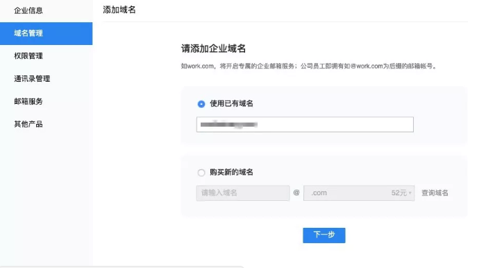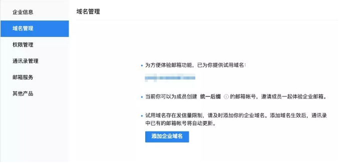 注册好企业账号后,进入域名管理,填写域名进行绑定,然后根据指引进行邮箱解析,解析完域名之后就可以使用了。
