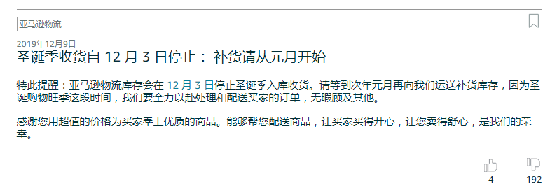 亚马逊这是什么操作呢,圣诞季从12月3号开始停止收货,但是卖家12月9号才收到通知!