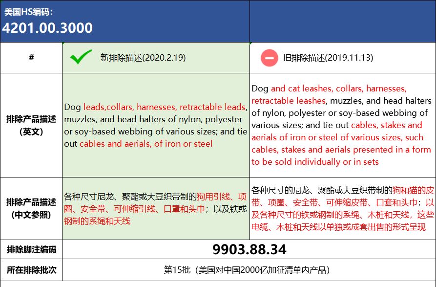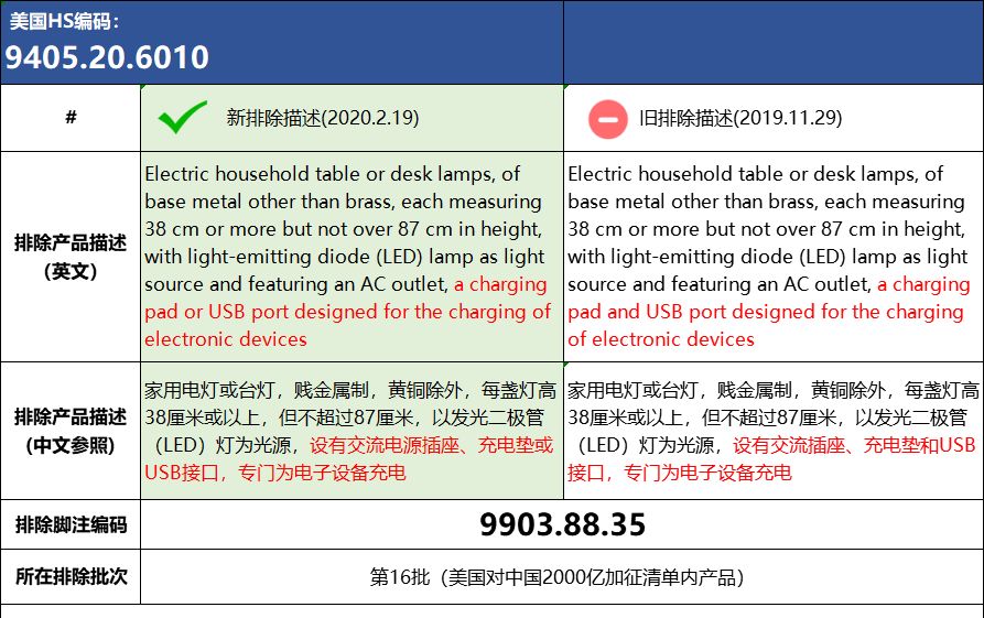 2020年2月19日美国排除对华商品加征关税清单情况: