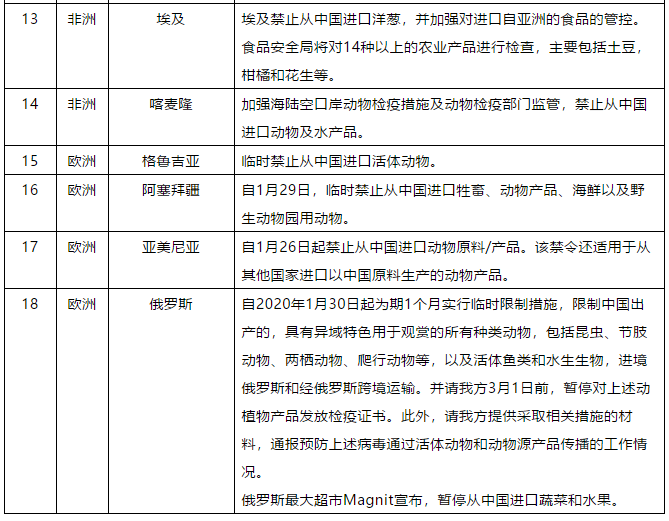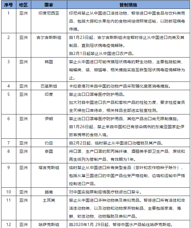 新冠疫情下境外各国对中国采取的货物管制措施一览表