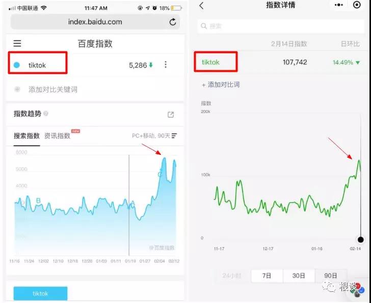 本着找原因的思路,去百度和微信的指数后台看了一下,从1月15号之后全网搜索TikTok的人逐渐多了起来,并在2月初达到了一个小高峰,从指数背后的趋势来看然,说明人背后的需求量很大,需求的背后就是商机,满足需求就可以获利,行业里服务商是对于商机其实是最为敏感的公司,正所谓春江水暖鸭先知道。这里需要说明一下对于服务商没有其他褒贬意思,毕竟是在一个完整的行业里面,下游的服务商特别是一些培训机构给行业新人起了入门作用,给行业源源不断输送人才,大家注意鉴别就好。