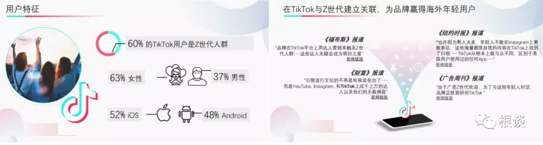 Tiktok女性用户占比较高,其中60%是Z世代的人群。相比Facebook用户人群更年轻,用户个性更强。对于电商来说,也是未来最有购买力的人群。