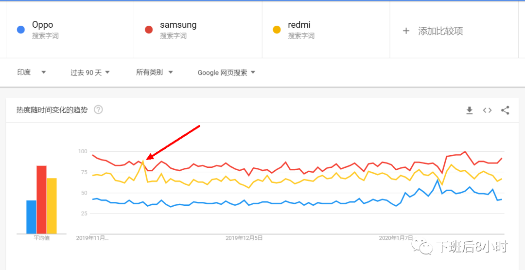 以印度市场为例,三个手机品牌所做campaign的一些trend,根据有些波峰突升的情况, 就可以去他们的社交媒体上去看看做了哪些campaign的动作,另外还可以看到哪些区域是比较火热的,这样做广告投放的时候可以主要针对这些地区。